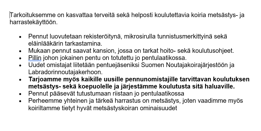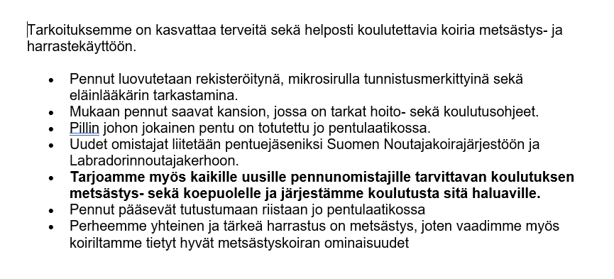 Pennut myydään metsästys / harrastekäyttöön rodunomaisiin kokeisiin.