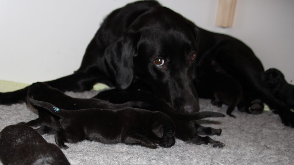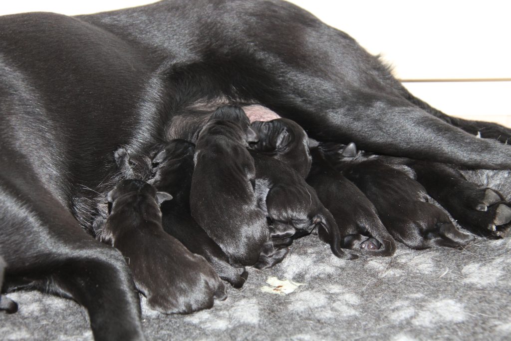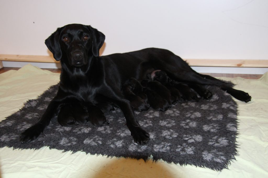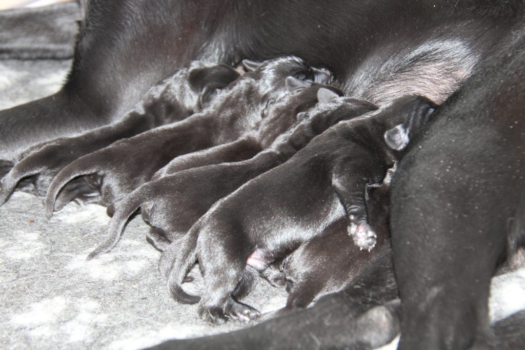 Ensimmäinen yö meni hyvin niin pennuilla kuin emälläkin. Emällä riittää maitoa ja toki ruuhkaa alkaa kohta maitobaarissa olemaan.