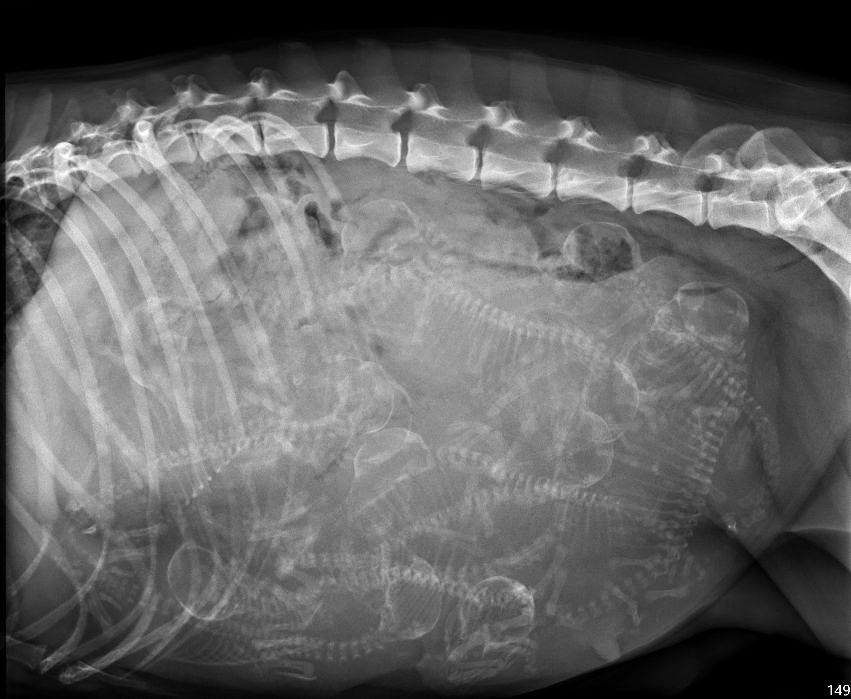 27.11.23 Allihuupan Karamel Sutra ”Spa” kävi tänään tiineysröntgenissä ja reilu määrä näkyi pentuja.