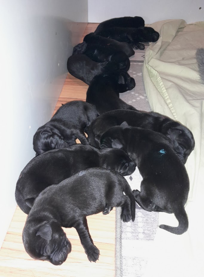 Spaan & Kustin pennut alkoivat syntymään eilen 28.11.2023 klo 22. Laatikossa tuhisee nyt 11 reipasta pentua. Emä ja pennut voivat hyvin sekä synnytys sujui helposti. Kaiken kaikkiaan pentuja syntyi 13, mutta valitettavasti kaksi narttupentua syntyi kuolleena. Ilmoittelemme varaajille lähipäivinä kunhan tarkastetaan vielä sukupuolet tuoreemmilla silmillä yön jäljiltä:-)