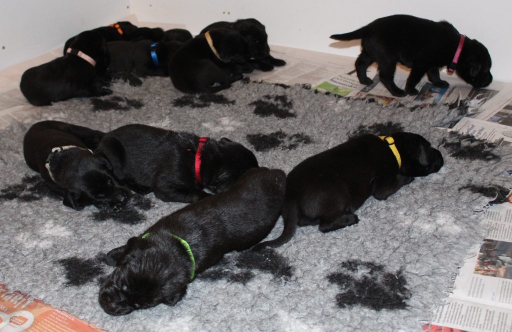 07.12.23 pennut ovat nyt reilun viikonikäisiä ja osa jo harjoittelee kävelemistä. Tähän asti kaikki on mennyt hyvin pentulaatikossa ja tänään kävin ostamassa väripantoja lisää joten kohta kaikki saavat erin väriset kevyet pentu kaulapannat kaulaansa.