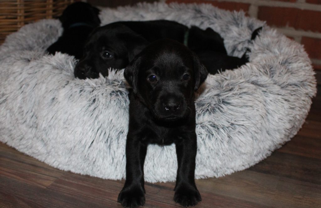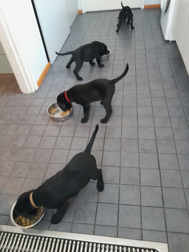 19.12.2023 Q-pennut ovat nyt 3 viikon ikäisiä. Pennuille on laitettu väripannat kaulaan, että tunnistus on helpompaa ja pystymme seuraamaan niiden kehitystä yksilöllisesti. Pennut saavat jo lisäruokaa ja samalla käytämme Acme pilliä kun annamme niille ruuan.