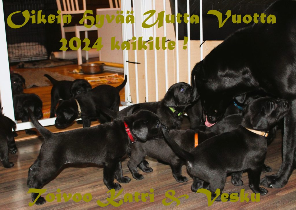 Pennut täyttävät tänään 02.01.2024 5 viikkoa. Kaikki pennut ovat energisiä sekä uteliaita tutustumaan pentuhuoneen ulkopuoliseen elämään. Kun pakkaset lauhtuvat (tänään-32c) niin pääsemme käymään ulkona.